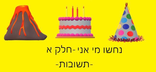 היוש אהובים שלי הנה התוצאות 1 הר געש 2 עוגה עם נרות 3 כובע לייצן יש כאלה שטעו אבל זה היה שיא הקליל ביצירה הבאה תיתכוננו להרבה יותר קשה טוב ביוש