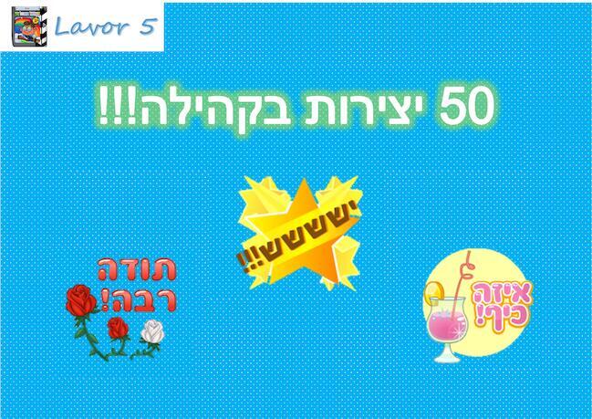 היי סופרסטארס! איזה כיף! אני מניח שהבנתם מהתמונה שהגענו לחמישים יצירות! אני באמת לא מאמין! איך הזמן טס כשנהנים! חחח! אז אני באמת מרוצה מזה שהגענו ל50 יצירות! האמת, שעם היצירה הזו זה כבר חמישים ואחד אבל מי סופר... (האמת שאני סופר, הרגע...) לא משנה! חחח! טוב אזזזז, אין לי הרבה מה לומר! רק דבר אחרון לפני שאני מסיים: אני מבקש מכל הלב, אני רוצה להעלות לקהילה סדרה חדש בסרטונים. סדרה באמת מרתקת אם הרבה הרבה אקשן וקסמים... אבל לא נעשה לכם ספוילר! חחח! (למרות שאם תרשמו בתגובות, אני אעשה תקציר קטן על הסדרה בהמשך), אבל אני לא יכול להעלות את הסרטונים ליוטיוב, כי אין לי ערוץ, ואני לא חושב שאני רוצה לפתוח אחד. לכן, מי שמכיר איזושהי אפליקצייה בגוגל, שלא צריכה הורדה, שיכולה להציג סרטונים, אני אשמח אם הוא ייצור איתי קשר. ככה אני פשוט אוכל לשלוח לכם קישור לסרטון, כדי שתצפו. אני באמת מבקש, זה אך ורק בשבילכם! ביי סופרסטארס, לבור5.