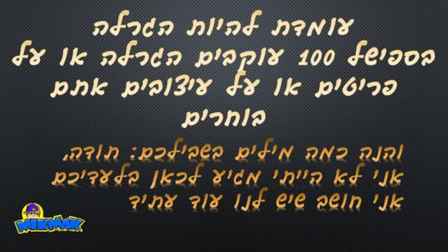 וואו תודה על ה100 עוקבים חברים עובד על הספיישל |