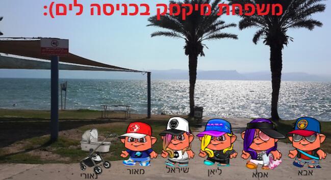 החלטתי להשתתף במילקישמה החודשית "המיקמק שלי מבלה בחוף הים אם משפחתו". בעצם זה כל המשפחה שלי, שהם בכניסה לים מוודים שיש להם את כל מה שצריך להגנה.