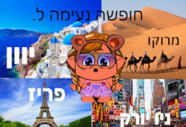 חופשה נעימה לכל היעדים פריז נוי רוק מרוקו יוון חופשה נעימה לכולם וכן כל המקומות הכי יפים שאפשר הביאו לנו פה לעולם המיקמק תודה לצוות מיקמק ! מקווה שאהבתם תיצירה תכתבו בתגובות מה דעתכם ביוש !