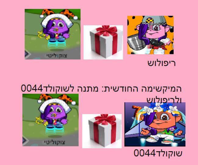 וואו יפה דרך הגב גם אני עשיתי מתנה לריפולוש חח בטח קיבלה הרבה מתנות חח |
