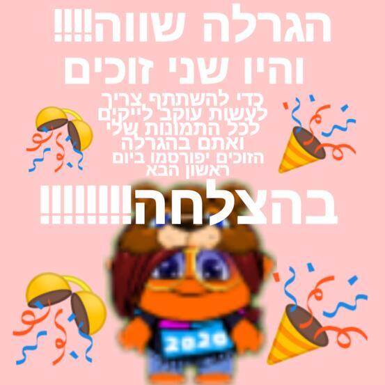 עשיתי הכול:) המספר שלי הוא: 48 מקווה שאני יזכה!! |