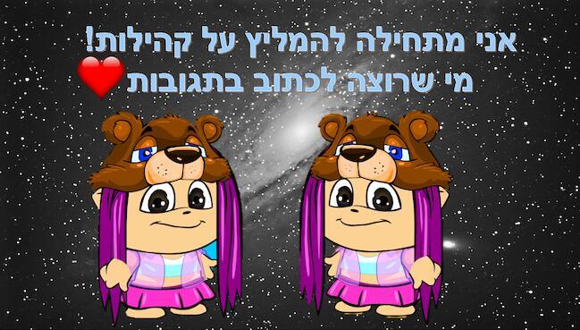 איזה מהמם!! באלי שתמליצי על הקהילה שלי אבל אם ישלך המון בקשות אחרות אז תמליצי עליהם קודם :) |