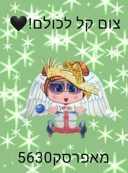 היי אפרסקים רציתי לומר לכל מי שיצום צום קל וכל הכבוד שאתם צמים זה קשה לצום אני אוהבת אתכם מאוד! ביי _______________________________________________ אין להעתיק יצירה זו _______________________________________________ ® כל הזכויות שמורות לאפרסק5630 _______________________________________________