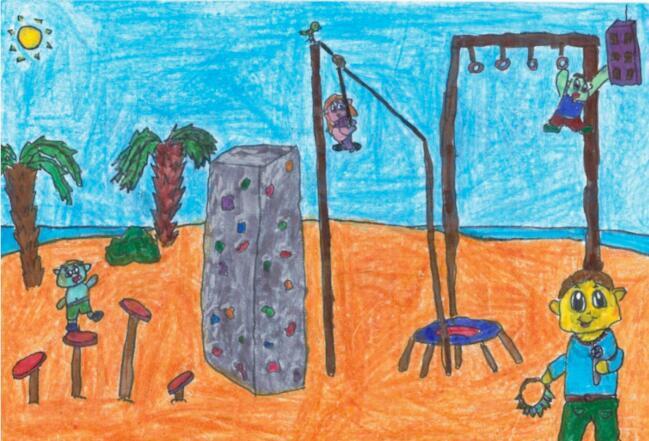 יפהההה :) בהתחלה מין הליכה כזאת על עמודים בשיווי משקל אחר כך קיר טיפוס אומגה, טרמפולינה לטבעות וקפיצה לשק איגרוף |