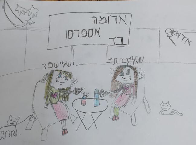 אז אני היום ציירתי את עצמי עם חברה נורא נורא ותיקה שלי זה מוקדש לך ישלישם3