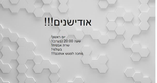חברים אני ממש מצטערת אבל כבר מאוחר מידי, כבר כתבו לי במיקטוק שמגיעים ואני לא יכולה עכשיו לשנות הכל... אבל אני מבטיחה שאני יעשה עוד סדרה ואני ישאל אותכם קודם מתי אתם יכולים! תודה על 45 עוקבים! ביוש |