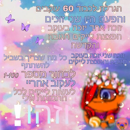 עשיתי הכוללללללל עוקבת מזמןןןןן מספר 15 אשמח עם תקדישי לי! |