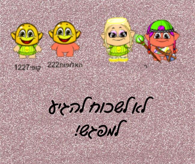 מזכירה לכם לגבאי המפגש אני והאלופות222 מתכוננות!!!