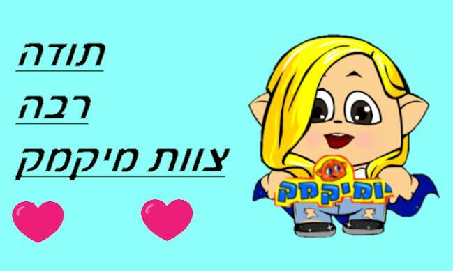 היוש אהובים שלי אני ניכנסת למיקמק ואני רואה שיש יום מיקמק עוד איזה יום וחצי ואני נירגשת ממש יהיה נורא כיף אז רק אני רוצה להגיד תודה רבה צוות מיקמק על המאמצים וההשקעות שהם עושים בישבילנו ואני ממש מקווה שאחד מהמנהלים יגיבו לי בתגובות זה החלום שלי ביושש ❤