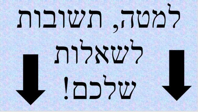 מה המאכל האהוב עלייך?-יש כמה, אני אוהבת גם דפי אורז, וגם דברים עם בשר. שאלה קשה מאוד מה את עושה בחופש?-אני במיקמק הרבה, רואה טלוויזיה, כותבת וקוראת באיזה יום מתחיל לך הלימודים?-מחר, בשלישי איזה צבע את הכי אוהבת?-יש לי שניים, טורקיז וירוק בוהק יש לך חיית מחמד?-לא, אפילו לא דג מה את אוהבת לעשות?-אני אוהבת לשחק מיקמק, לקרוא, לכתוב ולשחק. מה את אוהבת לאכול?-די אמרתי, אבל הקטגוריה המועדפת עלי זה בשר יש לך אחים קטנים או גדולים או גם וגם?-גדולים כמה זמן את כבר במיקמק?-מאה ומשהו ימים מה את אוהבת ללבוש?-אוברלים וחולצות ומכנסיים באיזה חוגים את?-השנה זה היה שחייה ואנגלית, לא יודעת שנה הבאה מה הבגד האהוב עלייך?-האוברול ג'ינס שלי בת כמה את?-אני בת תשע וחצי, אני עולה לכיתה ד'. איך אורכים בקהילה?-לא הבנתי. מי שכתב/ה את זה, תוכל/י לפרט בתגובות בבקשה? איך עושים סרטוני קהילה?-פשוט עושים סרטון יוטיוב, מעתיקים את הקישור, ומדביקים בתיבת טקסט של "סרטון יוטיוב" בהעלאת יצירה.