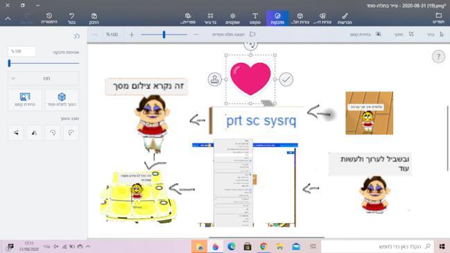 היי אלופים שליי!! אז אני ילמד אתכם איך אני עורכת היום אז זה ככה יש כפתור שנקרא prt sc sysrq אוקיי? אז לוחצים עליו באישור ההורים כמובן!! יודעים מה שההורים יעשו את זה ואחרי שעושים את זה כל הזמן שאתם תלחצו על הכפתור שה יעשה צילום מסך ובשביל לערוך לחצו על התמונה במקש השמאלי ותראו למעלה גם ערוך רגיל שזה בצייר וגם ערוך בתלת ממד אז תעשו מה שבלכם ובשביל לעשות את התמונה שצילמתם לוחצים על מדבקות ועושים הוסף מדבקה ואז זה מוביל אתכם לשם אז מקווה שעזרתי ומי שיכול להגיד לי איך עושים יותר טוב שאפשר לשנות פרצוף ועוד.. שיכתוב לי בתגובות ( לא פוטשופ בבקשה) אז ביי אלופים שליי אוהבת פרחי