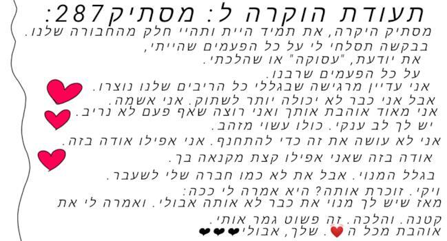 אבולי, אני תמיד נהנת לפגוש אותך! וגם תמיד איכשהו אני מתחילה קצת לכעוס, מכלום, ויש בך איזשהו קסם כזה, שאי אפשר להסביר חח כי ברגע שאת אומרת כזה דבר, אי אפשר! שלא לסלוח, אז אולי גם קצת ריבים היו ממני, מודה, כי כמו שאת מכירה אותי אני לא סולחת כל כך חיחי, ועצם זה שעשית לי תעודת הוקרה זה בכלל מרכך אותי חחח. לאב יו! |