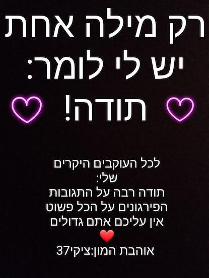 באמת תודה לכולם . אוהבת המון ואפילו מיליון ציקי37❤ |