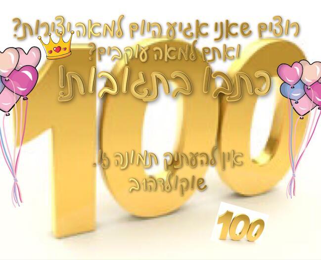 יאווווו תודה רבה לכםםםם!!!! הלוואי שגם העוקבים שלי יגיעו למאה עוקביםםםם!!! חחחח עוקבים מגיעים למאה עוקבים!!! חחחחחחח |