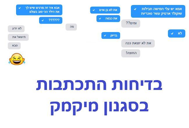 חשבתי על רעיון חדש שאף אחד עדיין לא עשה בדיחות התכתבות בסגנון מיקמק מה אתם אומרים על הרעיון ? תודה ל9רחלוש8 ומיכלנ4262 על העזרה