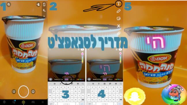 1. היכנסו לאפלקציית סנפצאט וצלמו את התמונה שאותה תרצו לערוך ( אני צילמתי מנה חמה בטעם סצואן- הטעם האהוב עלי). 2. לחצו למלעה על הכפתור בצורת T 3. רשמו את התוכן שאותו תרצו להציג על התמונה (שימו לב שאתם על פילטר בשם "GLOW" ולבסוף לחצו על "סיום" , לאחר מכן מקמו את התמונה במקום שתרצו 4. היכנסו שוב לכפתור T ורשמו עוד הפעם את הטקסט שרציתם- תנסו לשנות קצת את הצבע אבל לא יותר מידי ולחצו שוב "סיום" . לאחר מכן מקמו את הטקסט שרשמתם *לייד* הטקסט הראשון ( שימו לב שזה לא יהיה אחד על השני). 5. התמונה שלכם מוכנה! ___________________________