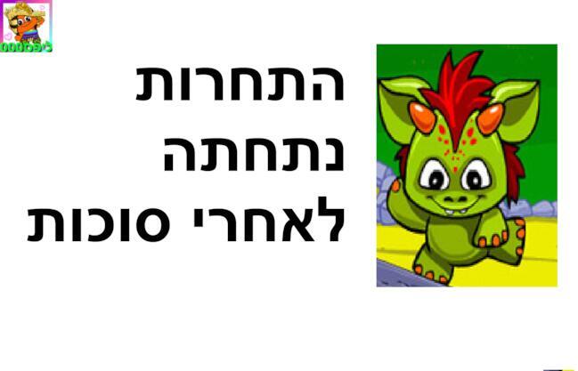 הייי חברימוס רק רציתי להגיד שהתחרות נידחתה למה בגלל סוכות ואסור לציייר או לעשות דברים כאלה ודרך הגב ריפולוש הזכירה לי אז היא נדחתה אבל מי שעשה הוא עדין בתחרות ומי שעוד לא שלך אז אני ישמח אם תשלחו מתי שזה יתחיל ומי שלא עשה ילה לעבודה חחח ילה ביוש
