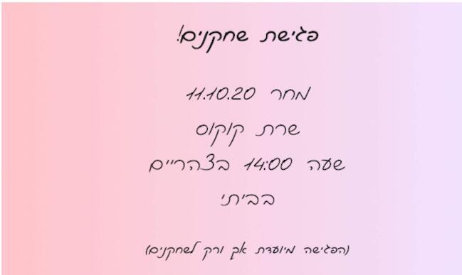 היוש לכולם, כאן שירן! # כידוע, אני מצלמת סדרה חדשה שנקראת "שינוי חיצוני" אני עושה פגישת שחקנים לשחקנים שנרשמו ובטוח משתתפים! הפגישה מחר ב- 11.10.20 שרת קוקוס שעה 14:00 בצהריים בביתי (הפגישה מיועדת אך ורק לשחקנים) ~~~~~~~~~~~~~~~~~~~~~~~~~~~~~~~~~~ # מי שרוצה עדיין להירשם שישלח לי חברות במיק-טוק ויגיד לי מה הוא רוצה להיות. תפקידים: ניקי- תפוס איתי- פנוי בר- תפוס קלואי - תפוס זואי- פנוי גסי- פנוי ~~~~~~~~~~~~~~~~~~~~~~~~~~~~~~~~~~ # פרטים על השחקנים עצמם ביצירה הזאת ~~~~~~~~~~~~~~~~~~~~~~~~~~~~~~~~~~ # נא להירשם עד ה- 24.10.20 (עוד שבוע) יאללה ביי