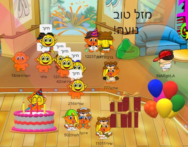 שלום חבריםם היום בשעה חמש ואני וחברים שלי חגגו יום הולדת לשתי חברים שלנו שהיום חוגגים. היה ממש כייף, תאמינו לי חח נועה ויונתן אני רוצה לאחל לכם אושר בריאות הצלחה פרנסה שיהיה לכם חיים טובים. מעומר. טוב סיימתי אני חושב ועד אז... ביוש