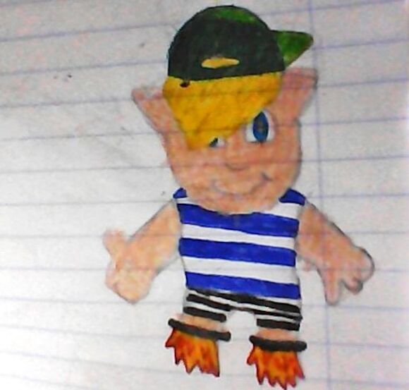 | תודה על ההקדשה ואחלה ציור, הפריטים שעצבת: השיער עם הכובע, הגופייה, והנעליים.