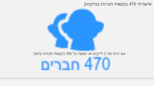 היי חברים היום אישרתי 470 בקשות חברות במיקמק ואם יהיה פה 2 לייקים אני יעשה כל 100 בקשות חברות עיצוב כמו זה