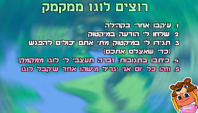אני עוקבת את יכולה לשלוח לי את מיקטוק? ז ברה תעצבי לי לוגו ממקמק! |