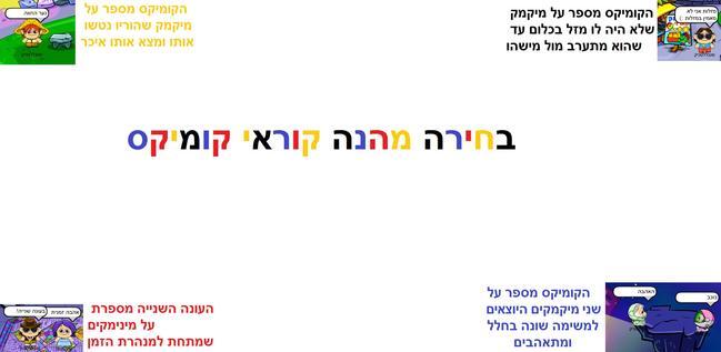 אני בוחרת בקומיקס של שני המיקמקים שיוצאים למשימה שונה בחלל ומתאהבים. תודה! |