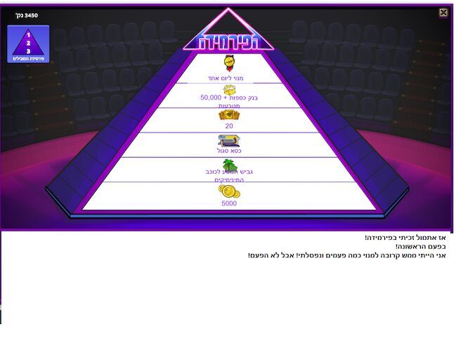 אבל אתמול שיחקתי בפירמידה ובפעם הראשונה הגעתי למנוי וניצחתי!