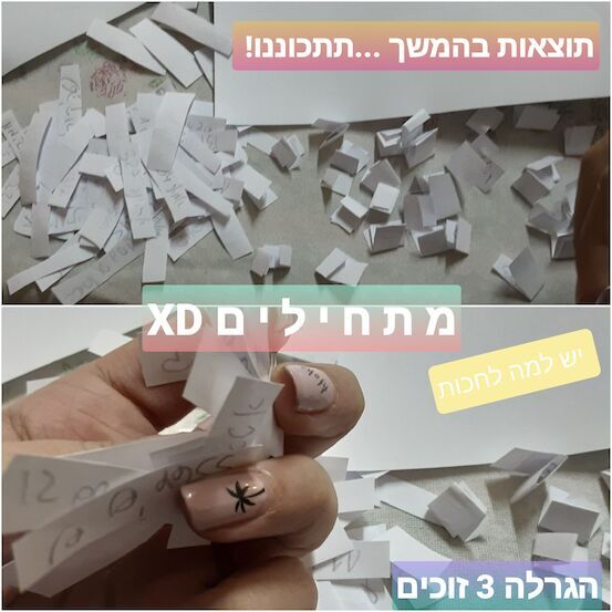וואי מקווה לזכות!! כל הכבוד לך שרשמת שמות על 100 פתקים XD |