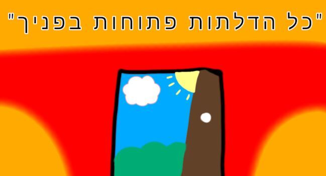 היי שבלולים(: הנה משפט מעודד לחיים: "כל הדלתות פתוחות בפניך." הפתגם הזה אומר למעשה שאנחנו עוד ילדים. כל הדלתות לקוחות בפנינו. ציירתי דלת פתוחה, בצד יש את הידית של הדלת נפתחת שזה לא כזה מובן, ואז יש את העולם המופלא מבחוץ❤ טוב, מקווה שאהבתם