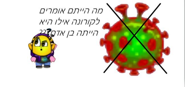 אני חושבת ש... *אני* "קורונה חביבה (לא באמת!) את קצת מפריעה לנו, את יכולה בבקשה ללכת? נשמח מאוד אם תלכי!! באהבה ובתקווה לשכנוע: רפונזל7148! כן! XD |