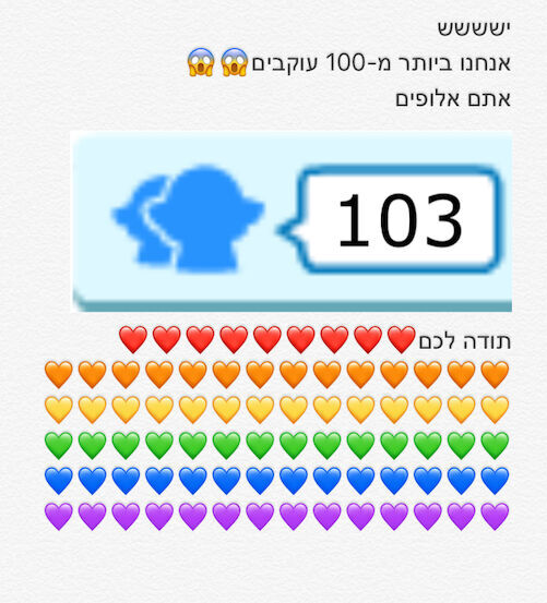 אז היום אני בבסורה חגיגית ומשמחת אנחנו ביותר מ-100 עוקבים וואוו אתם אלופים