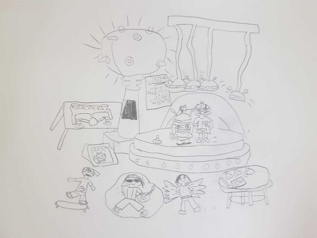 אז ציירתי אותי הולכת למעבדה ופוגשת את כול החבורה!