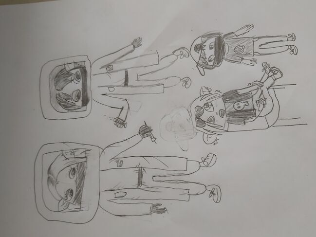 שלום לכולם אז כמו שהבנתם מהתמונה והכותרת, ציירתי ציור למשימה. אני רוצה להסביר רגע על מה שמצויר: אלה זואי וסאני שמפתחים חיסון לקורונה וגימבו מתנדב לנסות אותו, ומקס בא כדי שגימבו לא יפחד (כי גימבו מפחד ממחטים( השארה שלי). אז זהו וגם אני רוצה לומר שלום למיקמק שעוזב בקרוב , אז ביי ביי למונדו830.