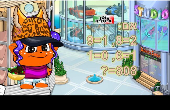 5 - לפי מספר העיגולים . ב-8 יש 2 עיגולים אז 2=8 ב-9 יש עיגול אחד אז 1=9 ב-0 יש עיגול אחד אז 1=0 ב-6 יש עיגול אחד אז 1=6 אז התשובה היא 5=808 |