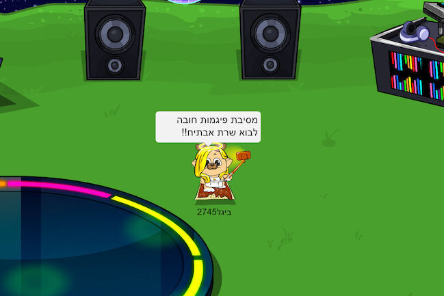 היי מסיבת פיג'מות בביתי שעה שבע שרת אבתיח ניפגשים באי חובא פיג'מה וההההה זהוא אז כולם לבוא זה האיה ממש כיף כל אחד יקרין לאצמו סרט ונשחק אמת או חובה וגם קרב ריקודים זהוא מקבה שתבואו ביי
