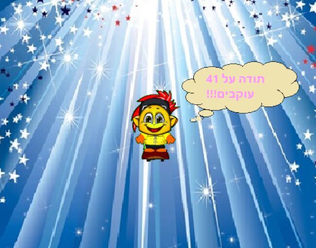 היי קודם כל.. על תחשבו ששחכתי את המיק(: אז כן כן 41 עוקבים!!!!!!!! תודה רבההההההההההה!!!!!!!!!!!!!!!!!!!!!!!!! זה מטורף אתמול היינו שלושים! ואי מה להגיד?... את מדהימים! מקווה מאוד שככה ימשיך הכצב יאלה ביי! אוהב אתכם יצירה הבאה זה מיק חינם(: