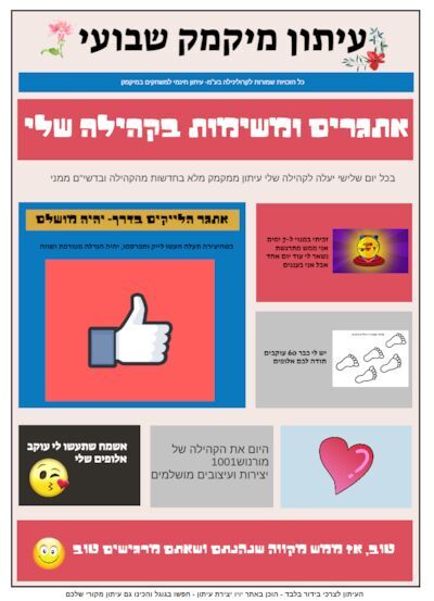 היוש דובדבנים שלי! מנישש? הפעם, אני מתחילה לעצב כמו שצריךך אתמול חשבתי על זה שאני יכולה לעשות עיתון לקהילה שלי! חשבתי וחשבתי ועוד פעם חשבתי ואז נזכרתי באתר מגניב שבו אני יכולה להכין עיתוןן! אז רצתי למחשב והכנתי לכם! קריאה נעימה! ( גם ההמלצה היומית שם...) ביושש, ואיזה כיף שאבטיח חזר אלינו, בלי צ'אט מאובטחXD אוהבתת, נשיקות חמותת קרולינילה ~~~~~~~~~~~~~~~~~~~~~~~~~~~~~~~~~~~~ נ.ב-ביצירה הבאה אני מגלה את השם שליי