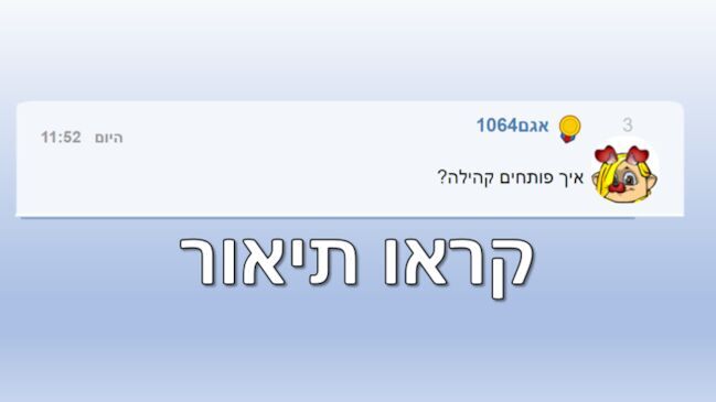 1. לוחצים על הכפתור "קהילה" שבסרגל למעלה 2. לוחצים הוסיפו יצירה 3. עושים יצירה ויש לך קהילה! מקווה שעזרתי לציי