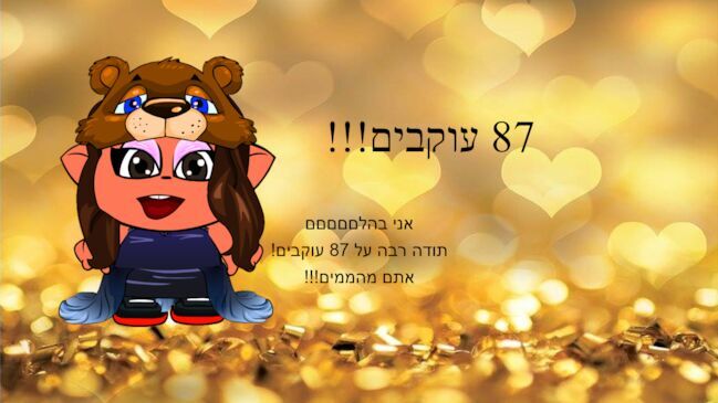 היי וואו מלא זמן לא העלתי יצירותתתתת אז מי שלא יודע שברתי את היד... אני עדיין עם גבס. אבל אחותי (מושלמת397) עוזרת לי. תודה לאלעלה שעזרה לי לערוך ולעצב! אזזזזזזזזז תודה תודה תודה אתם עוקבים מושלמיםםם אני לא מאמינה שהגענו ל87 עוקבים!!!! אוהבת אותכם❤❤❤