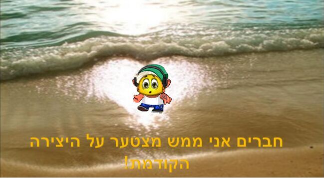 הי חברים מה קורה? תקשיבו היצירה הקודמת הייתה של חברה שלי שמשתמשת גם במיקמק שלי והיא בטעות העלתה את היצירה שלה אלי סורי בשמה מקווה שהבנתם אותי וסלךיחה על ההטרדה מינידיני1