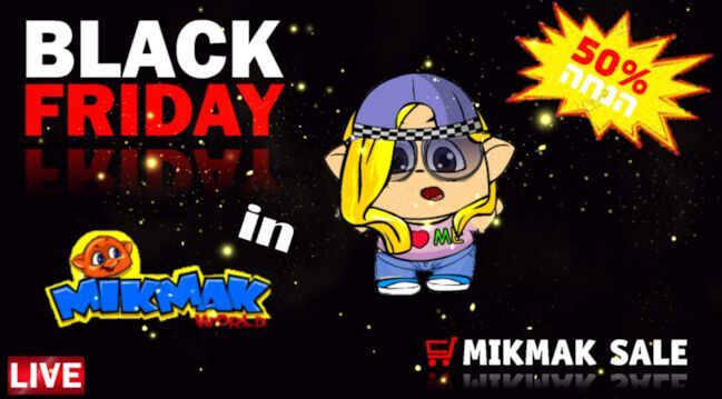 היי לכולם!!, מה נישמע?❤ ....................................... שמתם לב (חח ברור לפי הרקע החדש) שיש BLACK FRIDAY במיקמק?.................................................... זה אומר שאתם יכולים לקנות כל מה שאתם רוצים בחנות של מיקמק- בחצי מחיר!!! ............................................................. שווה לא?, ברור שכן!!!!!!!!!!!!!!!!!............................... אז רוצו לקנות לפני שייגמר!, תאריך הסיום של ה-BLACK FRIDAY הוא 11\29, י"ג כסלו, שזה ממש עוד מעט!!................ בהצלחה! תודה רבה!!, ולהתראות בינתיים❤❤❤