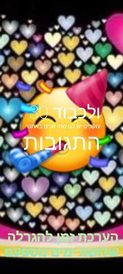 אז היי מה המצב כמו שאתם רואים יש לי 30 עוקבים וגם עש לנו הגרלה שנתנתי לה עוד שלושה ימים נוספים אבל יותר חשוב זה שישי לנו שתי זוכים באתגר התגובות! לפני שאני אומרת מי הזוכים אני ממש אבל ממש מודה לכולם על שיתוף הפעולה שלכם אתם לא יודעים כמה אני שמחה! והינה הרגע הגדול הזוכות הן *ליה76547 *קים1118 מזל טוב!!!!!!!!! כל אחת משתיכן מקבלת פרס שונה ליה מקבלת בלוג המלצה לקהיל וקים מקבלת 7 הקדשות (לקים אין קהילה וההקדשה לבלוג הזה לא נחשבת)