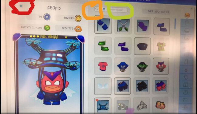 מה שסימנתי בכתום זה אתם יכולים ללחוץ על פריט(שאתם אוהבים) פעמיים ואז ללחוץ על הלב וזה יראה לכם אותו ואת כל שאר הפריטים שלחצתם עליהם פעמיים(כי אתם אוהבים את הפריטים האלו(כנראה))