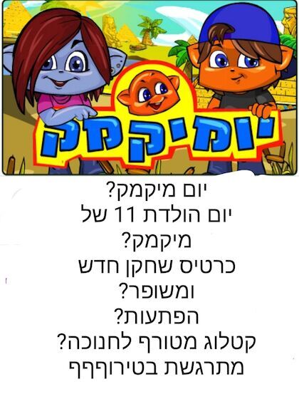 אז מיקמקים יקרים מה שלומכם? קולולולולווו מחר אנחנו מתחילים בחגיגות יום ההולדת ה-11 של מיקמק כן!!!! מיקמק מחר יחגוג 11!! אנו בשוקקקק ולא רק זה יש את השדרוג הגדול שעשו בכרטיס השחקן האישי של המיקמק.