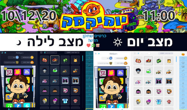 יצא כרטיס שחקן חדש! גדול יותר,נוח יותר, קל יותר, גלילה נוחה ומהירה לכל הפריטים!, אפשר לחפש בקלות כל פריט שרוצים בלחיצה על הזכוכית מגדלת, אפשר גם לסמן בלב פריטים אהובים ומועדפים בלחיצה על הלב, אפשר גם לעשות מצב יום בלחיצה על הירח ולעשות מצב לילה בלחיצה על השמש, בנוסף היום ב11:00 בבוקר יהיה יומיקמק זה אומר שכולם יהיו מנויים!