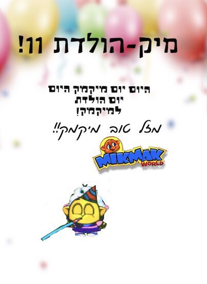 היוש:)) דבר ראשון יש יום הולדת למיקמק!!! וואוווו יאייי! וגם יומיקמק:)) אז יומיקמק שמח:)) אני עושה לזה אחכ יצירה חשובהה יש נאום+ברכה ממני למיקמק ולמנהלי מיקמק קבלו: קודם כל אני אגיד למנהלים, אלה שהקימו את אתר מיקמק המדהים! תודה, תודה ותודה רבההה❤️ תודה שאתם הקמתם את האתר המופלא הזה אתם קולטים?! כבר 11 שנים הוא קיים כל הכבוד באמת למנהלי מיקמק שכל שבוע עושים משהו חדש שיהיה לנו כיף, תודה!❤️ למיקמק, את האתר המופלא הזה הכרתי לפני שנתיים בערך מבני דודים שלי, שיחקתי ופרשתי. השנה חזרתי מדמות אחרת מיקמק, מזל טוב❤️ אתה מי שמשמח, מחבר, אוסר שעמום ועוד... את כל ילדי ישראל תודה לך❤️ במשך 11 שנים פעלת אז תודה❤️ מאחלת לך עוד הרבההה שנים לחיות ולשמח את ילדי ישראל! מזל טוב למיקמק שלנו!!!!
