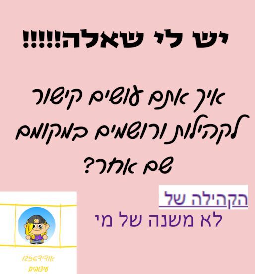 אוקיי אז כשאתה נכנס לקהילה יש למעלה למעלה קישור, אתה פותח עוד חלונית כדי לעלות את היצירה ואז אתה יכולה לכתוב משהו וישר בלי רווח לשים שתי נקודות= : כאלו. ואז אתה גורר את הקישור מחלונית עם הקישור ומעביר לליד הסוגריים. זהו, מקווה שעזרתי(: |